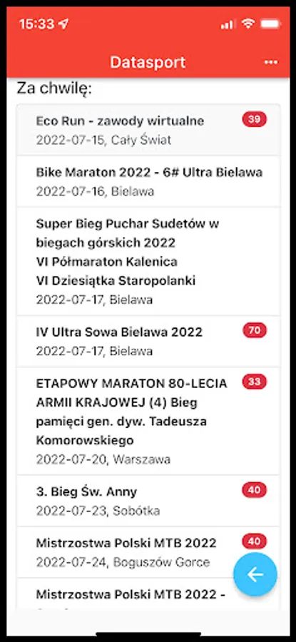 It allows you to sign up for the competition, view the results of the competition, take photos during the competition, read the result on the basis of scanning the QR code from the starting number.