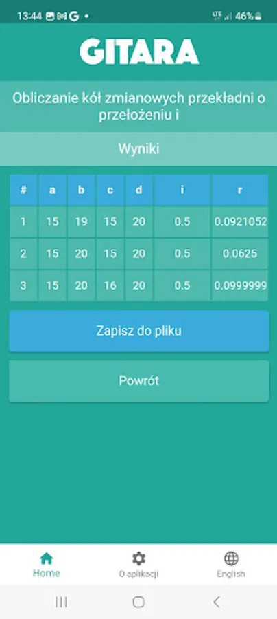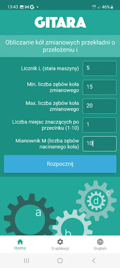 Guitar - an application used to find a set of 4 toothed change gears, forming a gear (the so-called guitar) with a given ratio, used in machines for processing teeth, threads, etc.