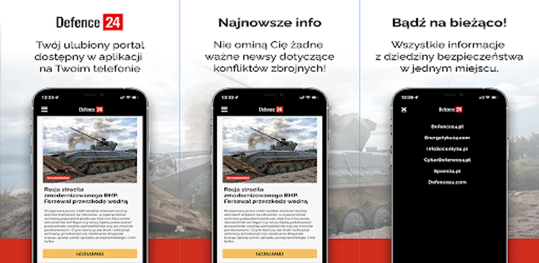 Defence24.pl is the largest Polish portal dealing with the subject of the armed forces, defense industry and geopolitics. News in the field of broadly understood security, gathered in one intuitive application. Access to information services such as Defence24.pl, Energetyka24.com and InfoSecurity24.pl. All your favorite portals on your phone!