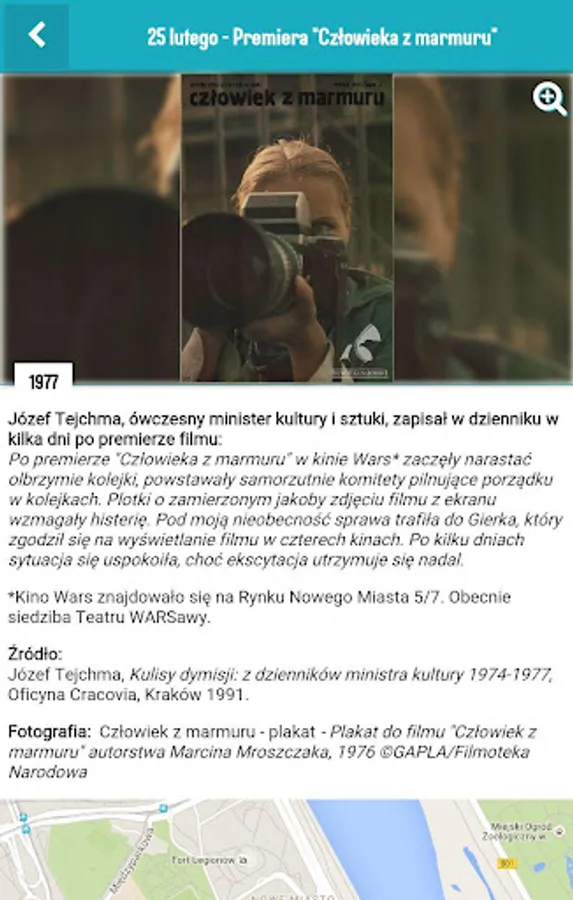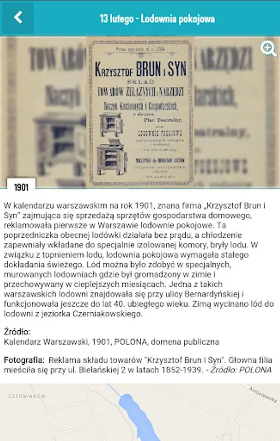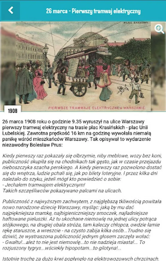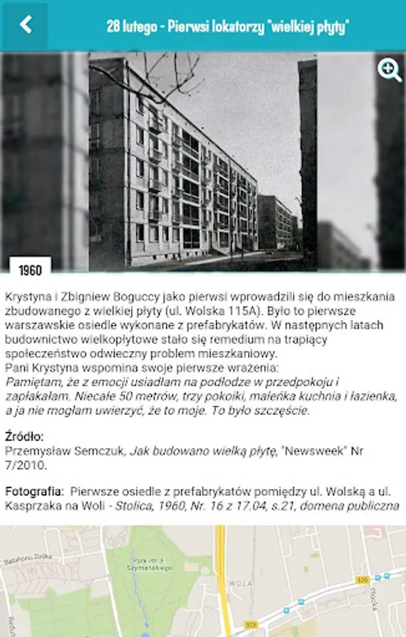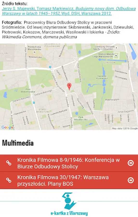 "E-card from Warsaw" is a project of the History Meeting House aimed at people interested in the history of the capital in the twentieth century, that is shown in an unusual way. Every day the application user will get a new batch of "little news yesterday" about what that day in the past happened in Warsaw and then lived its inhabitants. The application uses eyewitness accounts, photos, fragments of newspapers, advertisements, announcements, applied graphics, thus giving a mixed picture as possible of the Warsaw daily life over the years.