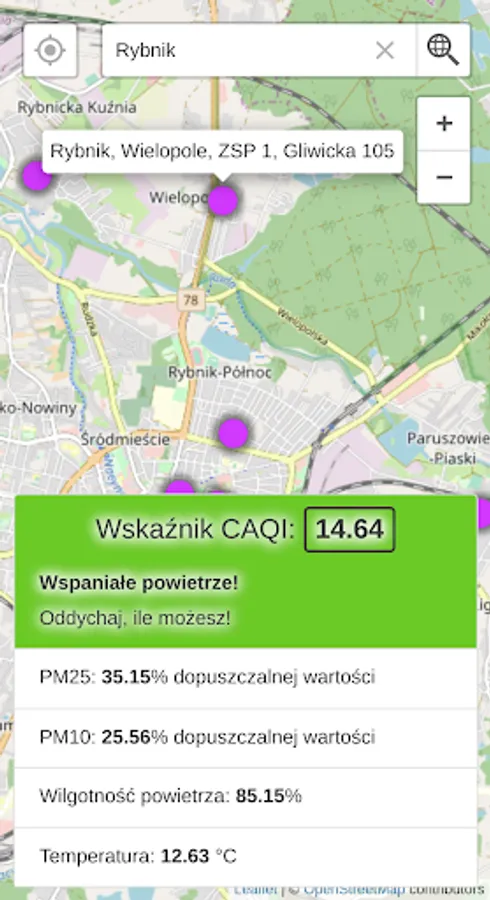 The application uses data collected in real time from Airly sensors. The location of the sensors is displayed on the map. You can use your own location or find anywhere in the world using the search engine. The sensors are located mainly in Poland and Western Europe.
