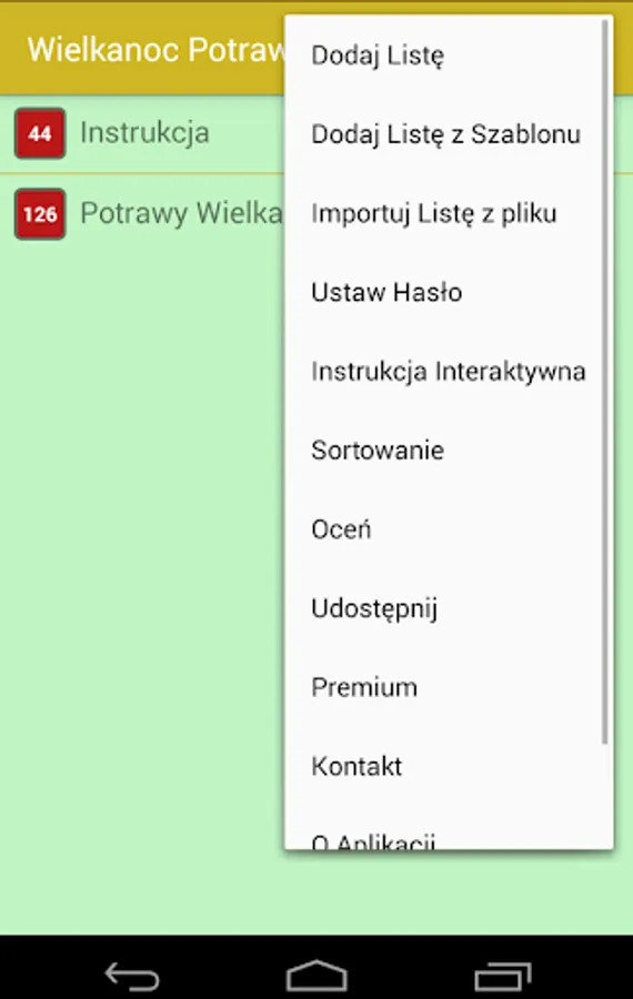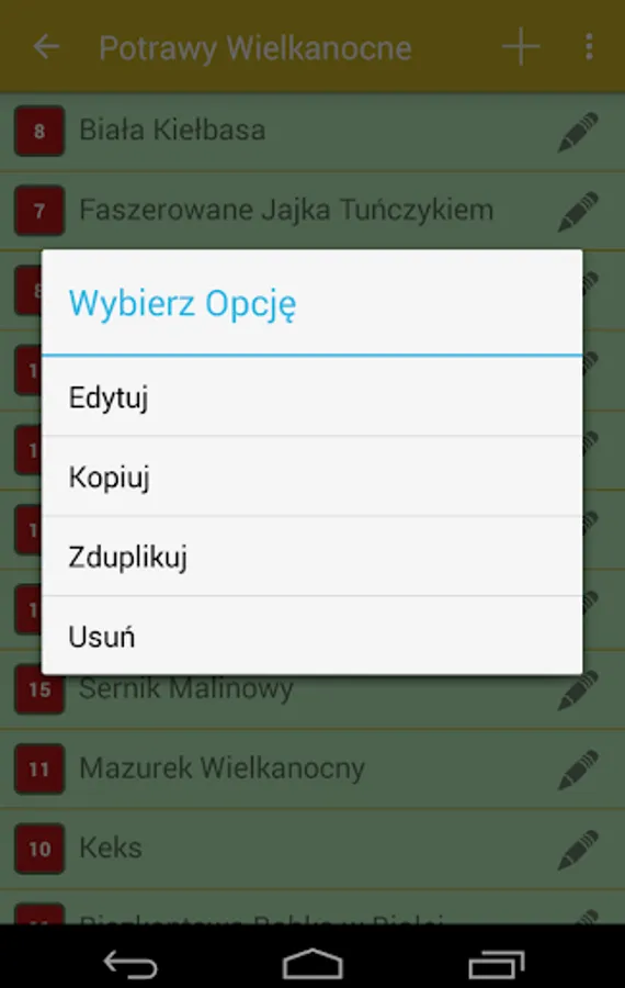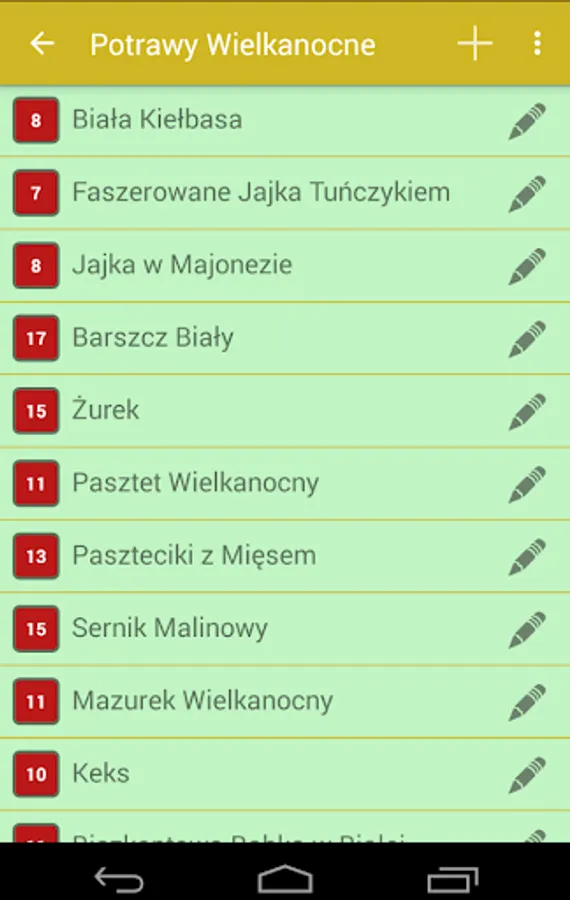 Apka allows the preparation of traditional Polish dishes at Easter, thanks to the task list of categories with the possibility of adding a letter templates.