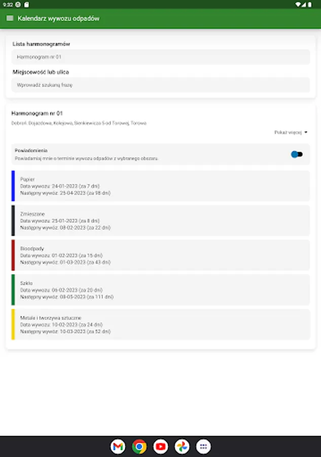 The application will remind you of the date of collection of individual waste, will inform you about the rules of conducting selective waste collection, will notify you about news related to this topic. The module also allows you to send complaints about the lack of waste collection, damaged container or other situations.