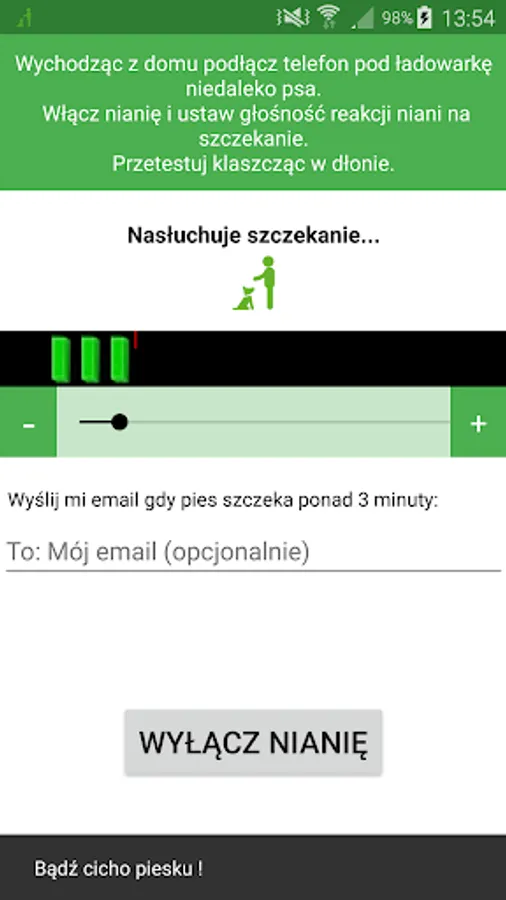 5. If the dog szczeknięciu sound starts up, the application works :)