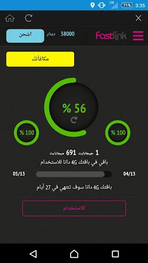 “With the new version of Fastlink application you can manage your subscription and enjoy the fastest internet provided by Fastlink 4G with LTE technology. All Fastlink subscribers can enjoy the new application and start using it with all the new features that we added to it recently. Fastlink Application allows you to do many things with single finger touch. With Fast link application you can: