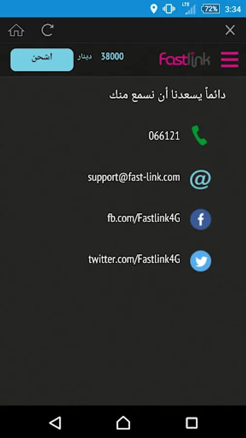 -Find all the contact information to reach our customer service, website and social media activates. And many other things .. try it today and enjoy your service with fastlink”