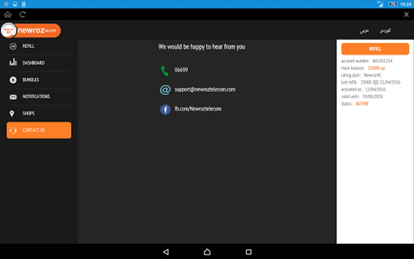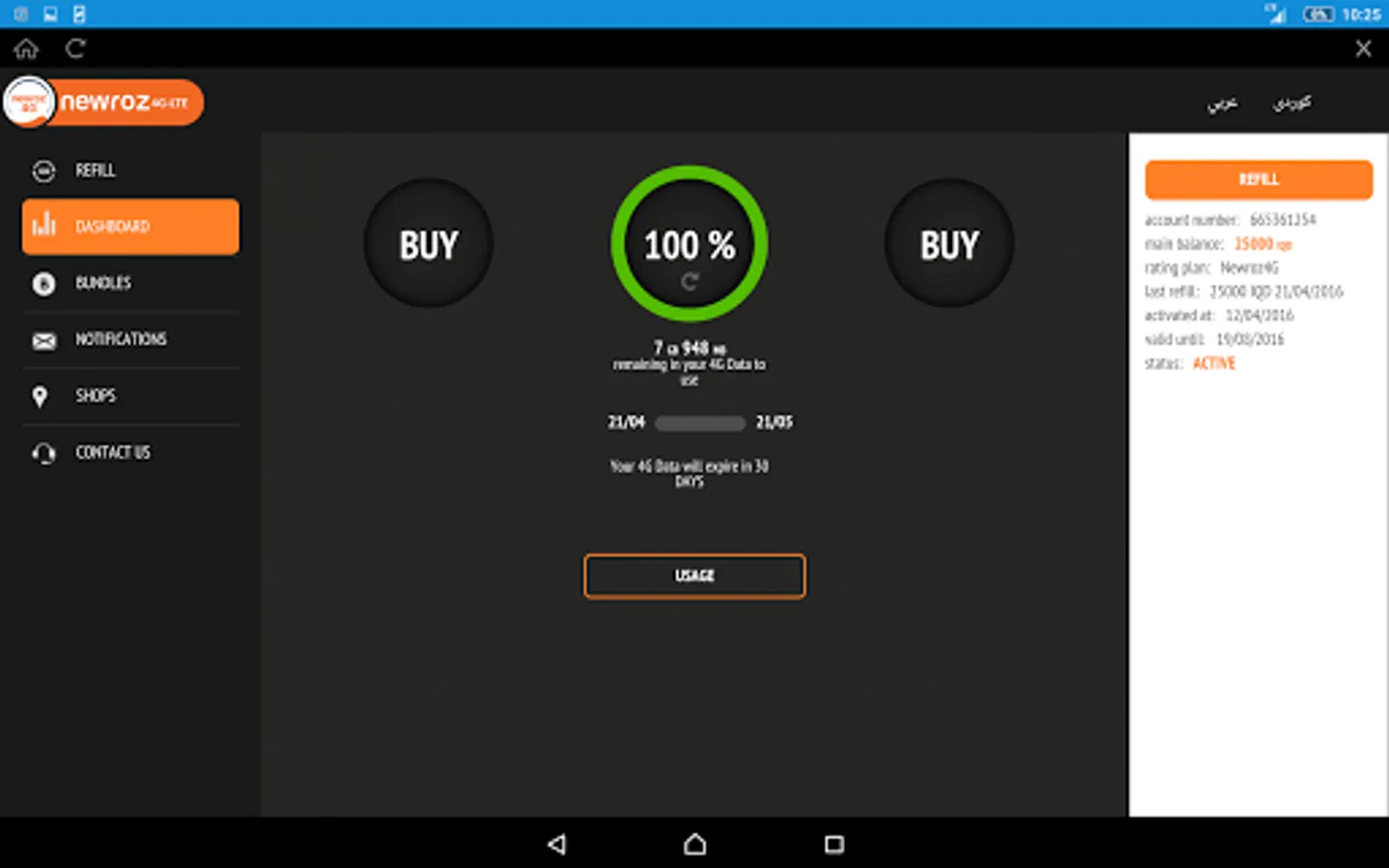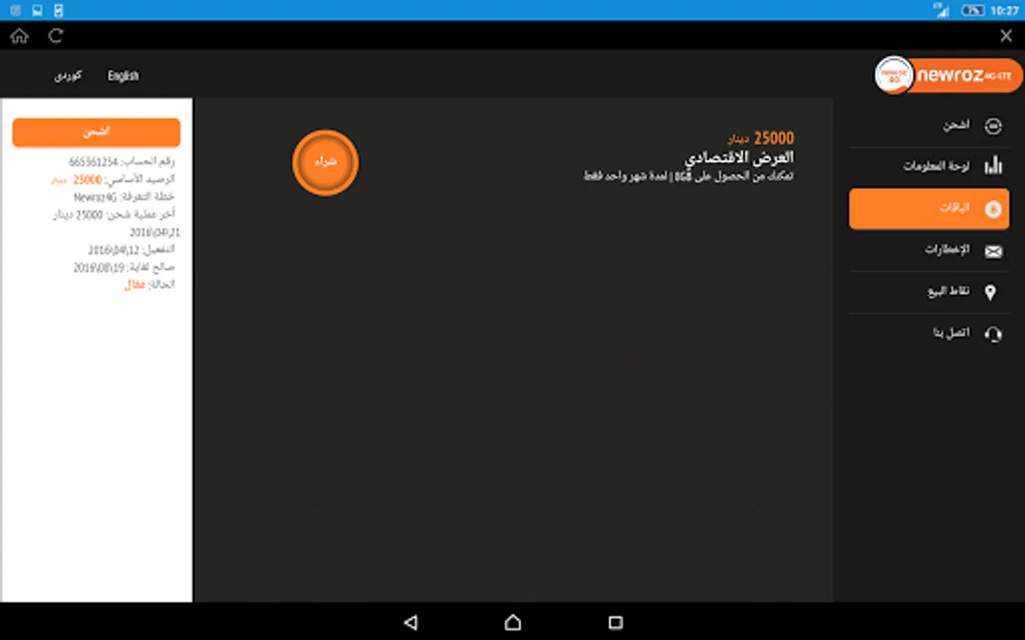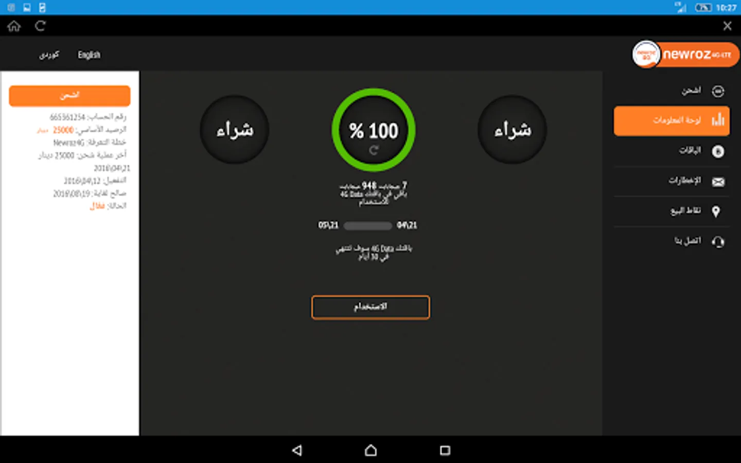 This is the official Application provided by Newroz 4G, and with this application you can manage your subscription and enjoy high internet service quality which is provided by Newroz with LTE technology. All Newroz4G subscribers can enjoy the application and start using it with all the provided features that include: