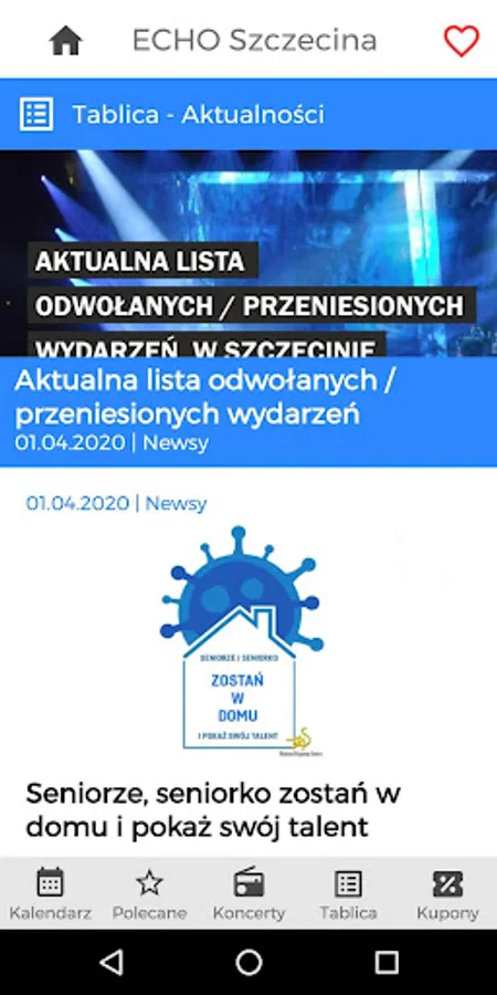 The most important new feature is the addition of a Whiteboard - News. It is a place of publication of news and news related to culture and entertainment. In one place, current news is published that comes from cultural institutions, event organizers, or the City. At present, for obvious reasons, the board is dominated by a topic related to the extraordinary situation in which we have all found ourselves. There are messages, appeals, information about support actions and about the situation related to canceling and moving events to other dates.