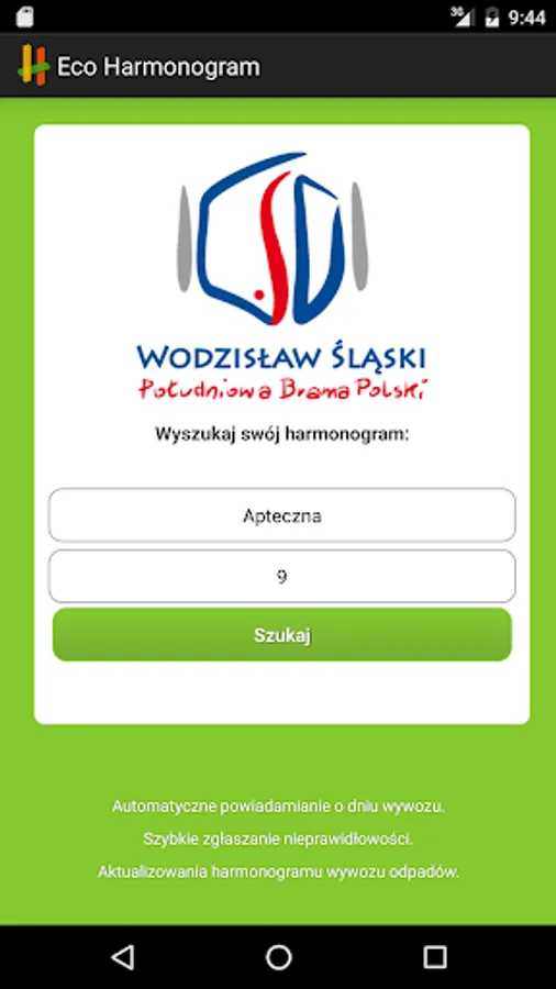 EcoHarmonogram for the city of Wodzislaw Slaski promotes selective collection of municipal waste in the city.