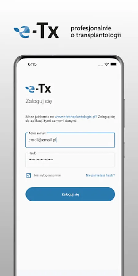 If you have an account at www.e-transplantologia.pl, after downloading and installing the e-Tx Application, use it to activate the Application.