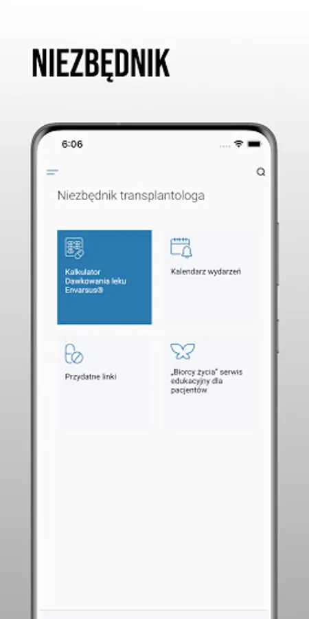 The first application for Polish transplant doctors. The e-Tx application provides instant access to the knowledge base: e-lectures, webinar recordings, reports from scientific conferences. It is easy to install and intuitive to use. It contains very practical functionalities such as: Dosing Calculator helpful in calculating the daily dose recommended for your patient and the optimal distribution of the tablet strength of one of the immunosuppressive drugs available on the market (according to the Summary of Product Characteristics) and the Transplantologist Calendar with the dates of selected, most important industry events.