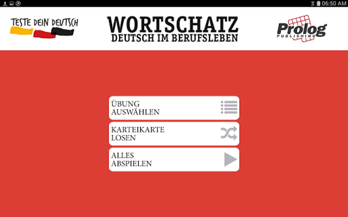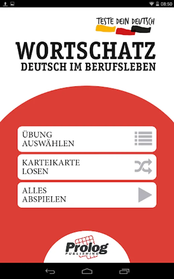 FLASHCARD APPLICATION “TESTE DEIN DEUTSCH - Wortschatz. Deutsch im Berufsleben" is a part of the “TESTE DEIN DEUTSCH - Wortschatz. Deutsch im Berufsleben" PACKAGE (can be obtained at language bookstores or at www.prologpublishing.com)