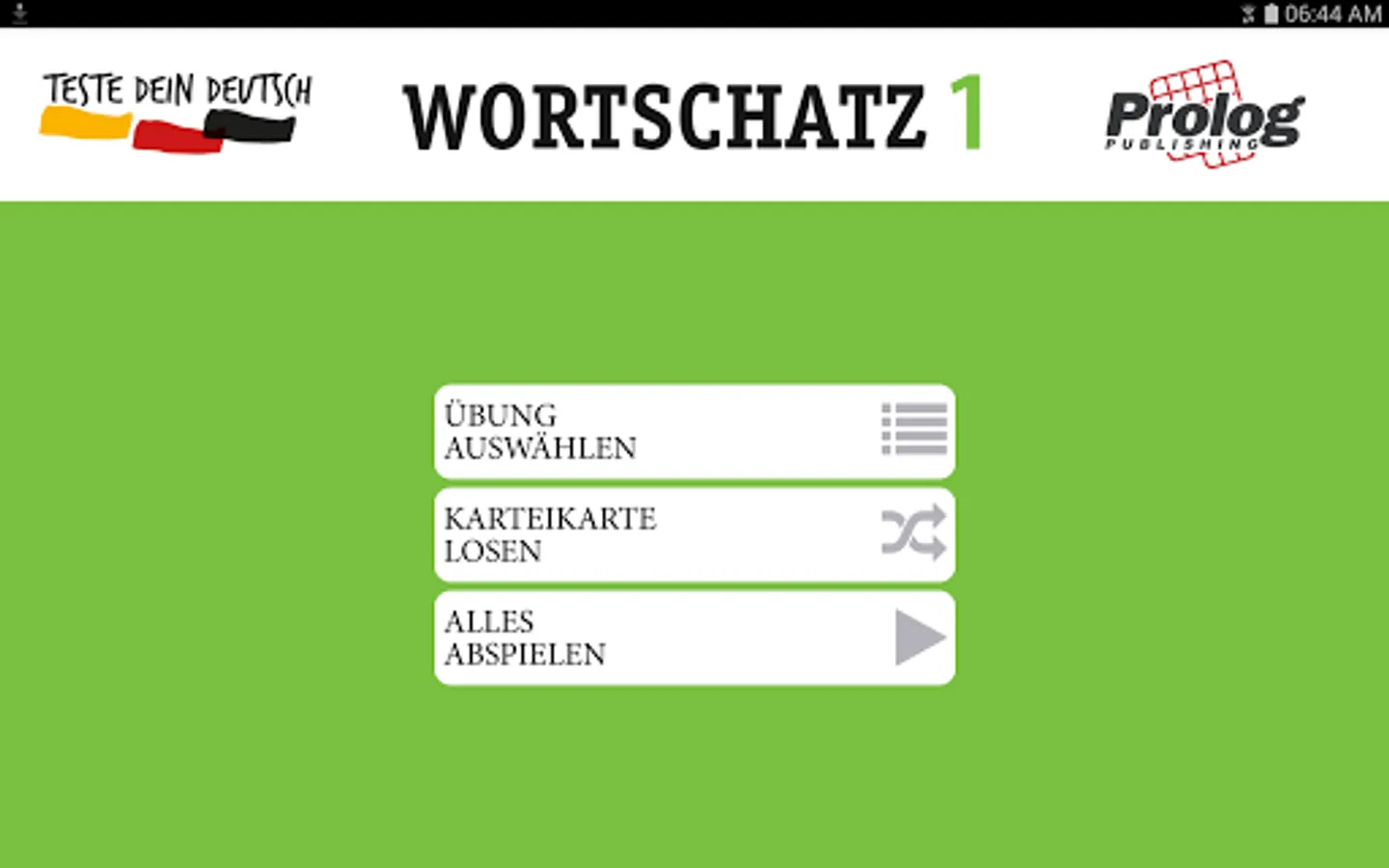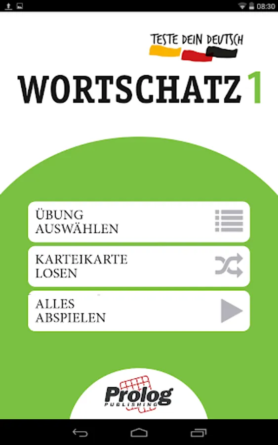 FLASHCARD APPLICATION “Teste DEIN DEUTSCH - Wortschatz 1 PLUS" is a part of the “Teste DEIN DEUTSCH - Wortschatz 1 PLUS" PACKAGE (can be obtained at language bookstores or at www.prologpublishing.com)