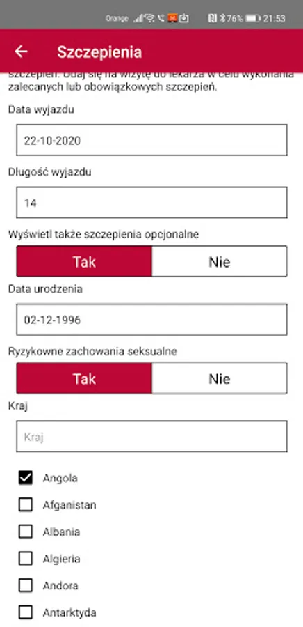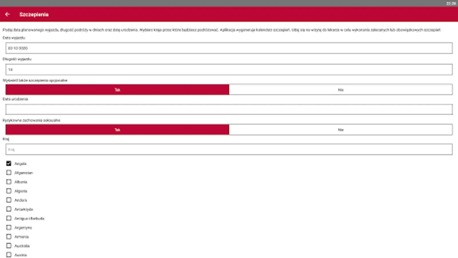 We encourage you to use the interactive travel vaccination calendar, which we have prepared at the Department of Infectious Diseases, Tropical Diseases and Acquired Immunological Deficiencies of the Pomeranian Medical University. This will allow you to better estimate the time needed to start vaccinations and to better prepare for the planned trip. The calendar reminds you to vaccinate before the planned travel date and includes guidelines depending on the route of the planned trip.