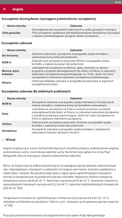 Remember to consult a doctor before departure, check the vaccination status with us and our family members, and check the recommendations for traveling to a given country before traveling to areas with an increased risk of developing the disease. It is worth taking a travel first aid kit with appropriate medicines, prepare clothes, get insect repellent, insure yourself against treatment costs and, if necessary, apply antimalarial prophylaxis. An important element is self-education about the conditions in a given tap and area.