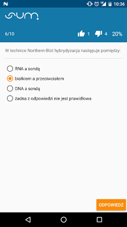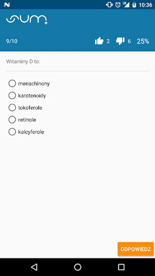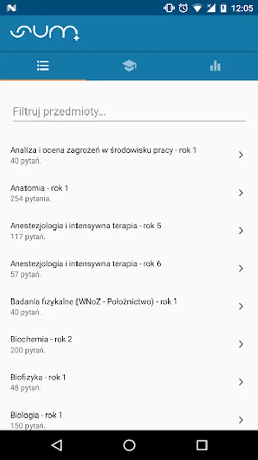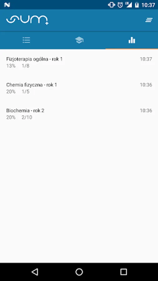 And how does it work? By running the application you must have access to the Internet - apka must synchronize with servers SUM-in and download the questions from the database. Select your subject of interest, specify the number of questions and run the test - I wonder if you reach 100% efficiency? Their performance rates can be found in the statistics view, where we gather solved all your tests so you will see how your learning process progresses.