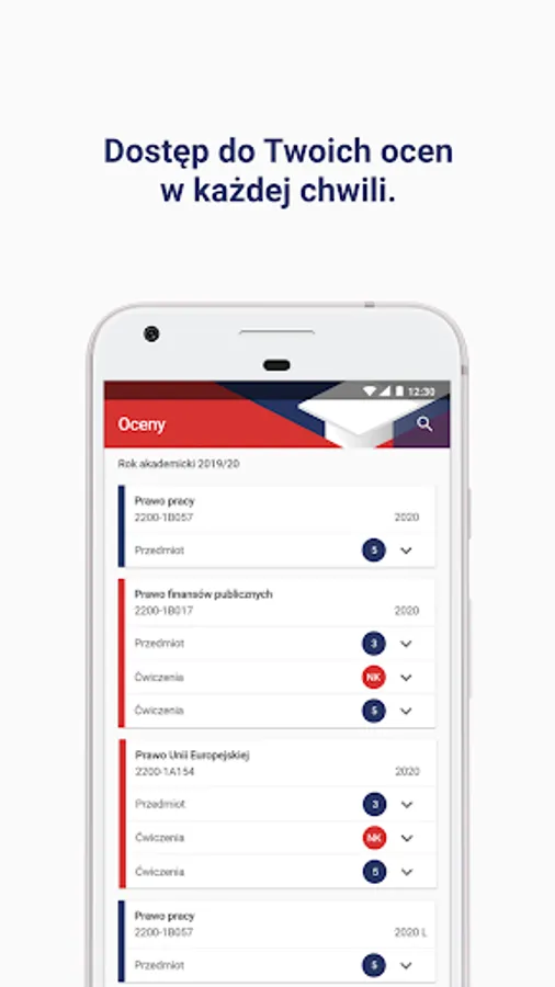 Grades/Exam reports - in this module the student will see all the grades obtained, the employee will be able to complete the grades in the exam report. The system sends notifications about new grades on a regular basis.