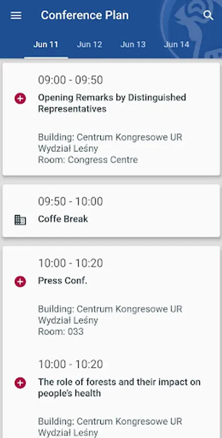 Conference Plan - view a plan for a chosen conference, add sessions to your schedule