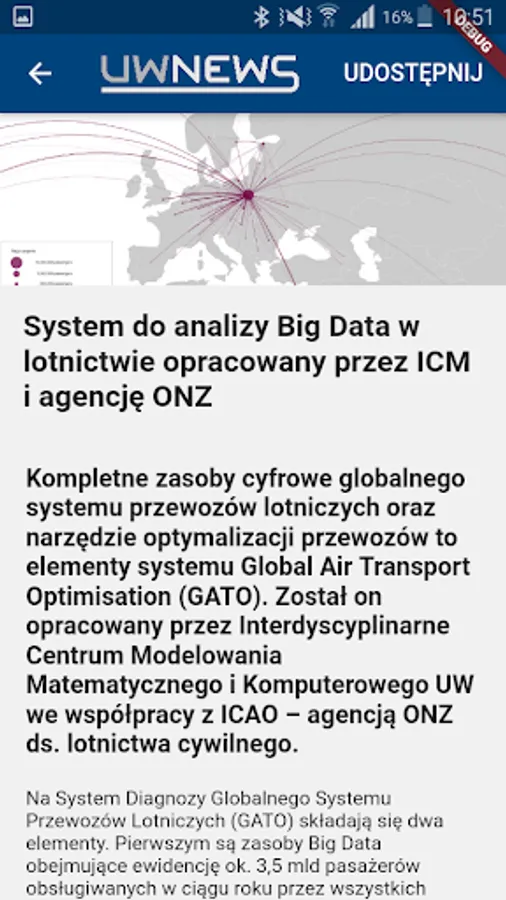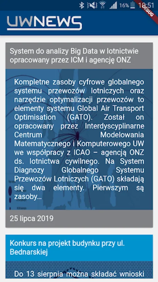 The application displays news from the university's life