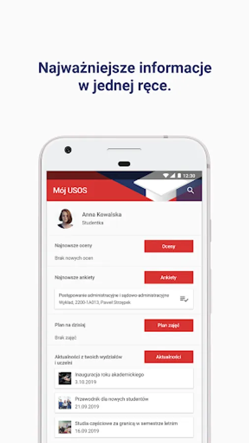 Mobile USOS MUT is intended for students and employees of the Military University of Technology. Version 1.12 of the application provides the following modules: