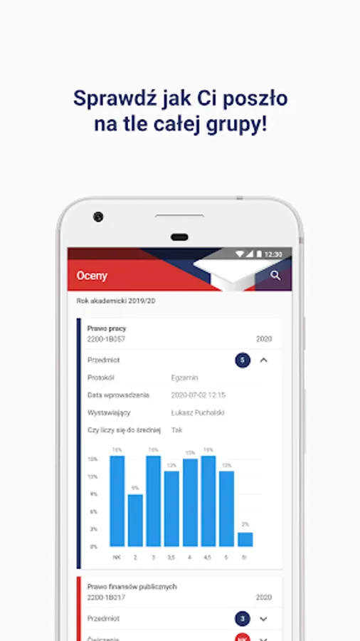 Grades / Protocols - in this module, the student will see all the grades obtained, and the employee will be able to add grades to the protocol. The system sends notifications about new assessments on an ongoing basis.
