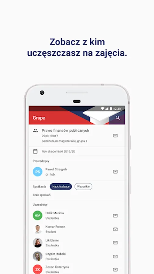 Class groups - information about the subject, teachers and participants is available; The place of classes can be viewed on Google maps, and the dates of the meetings can be added to the calendar used on the mobile phone.