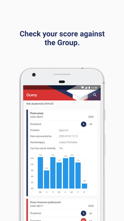 Tests - the student will see points from tests and final assignments, and the employee will be able to enter points, grades, comments and change the visibility of the test. The system sends notifications about new results on a regular basis.