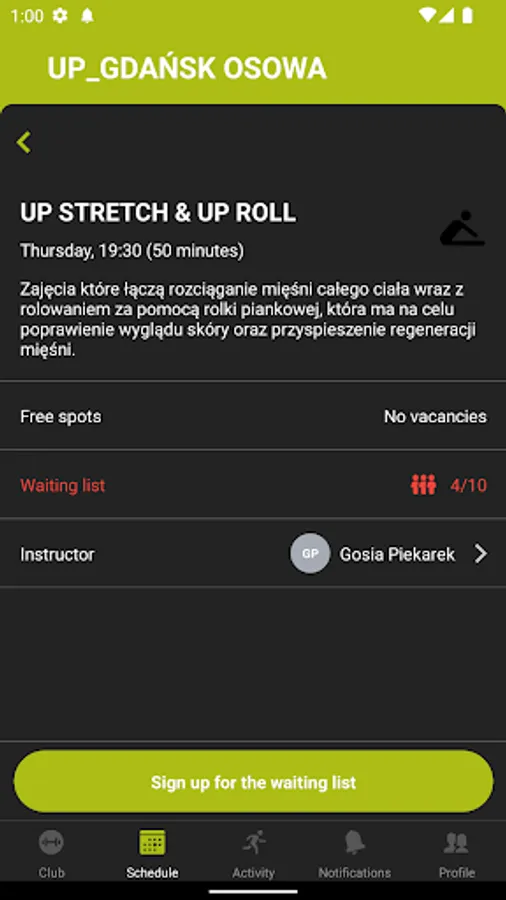 - you have easy access to the schedule of classes in the clubs - registration for classes at any time