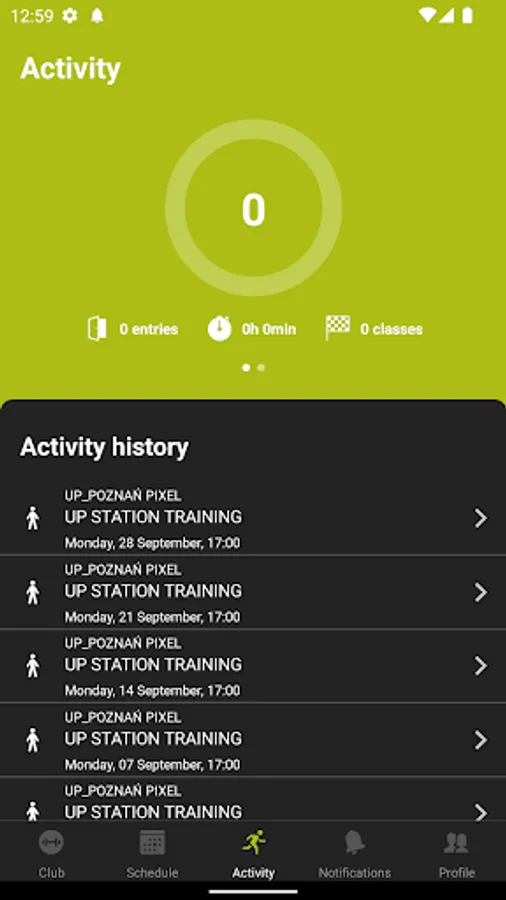 - you can see your progress, incl. number of visits, classes or time spent in the club
