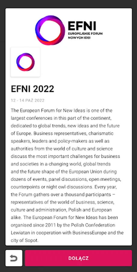 Every year, the Forum gathers over a thousand participants - representatives of the world of business, science, culture and administration, both Polish and European. The European Forum for New Ideas has been organized since 2011 by the Lewiatan Confederation with the participation of BusinessEurope and the city of Sopot.