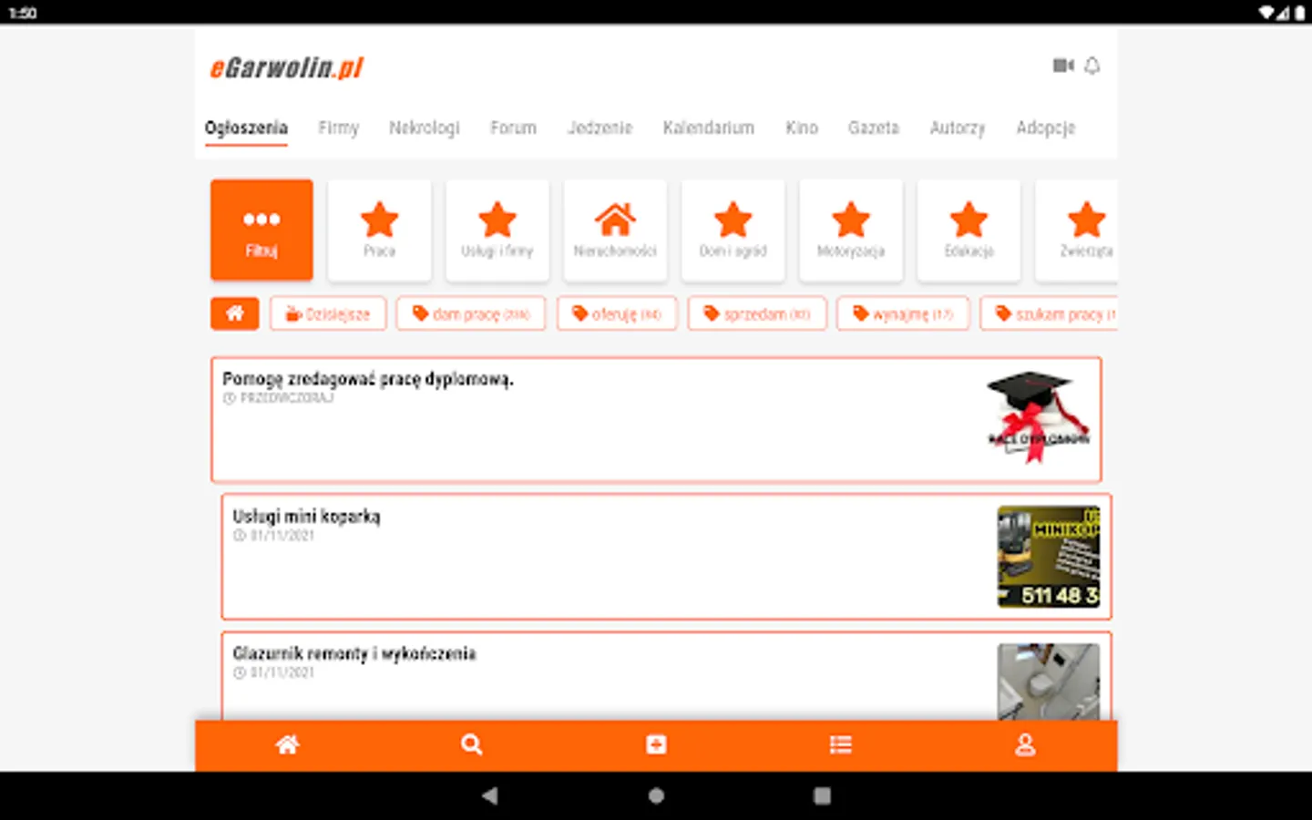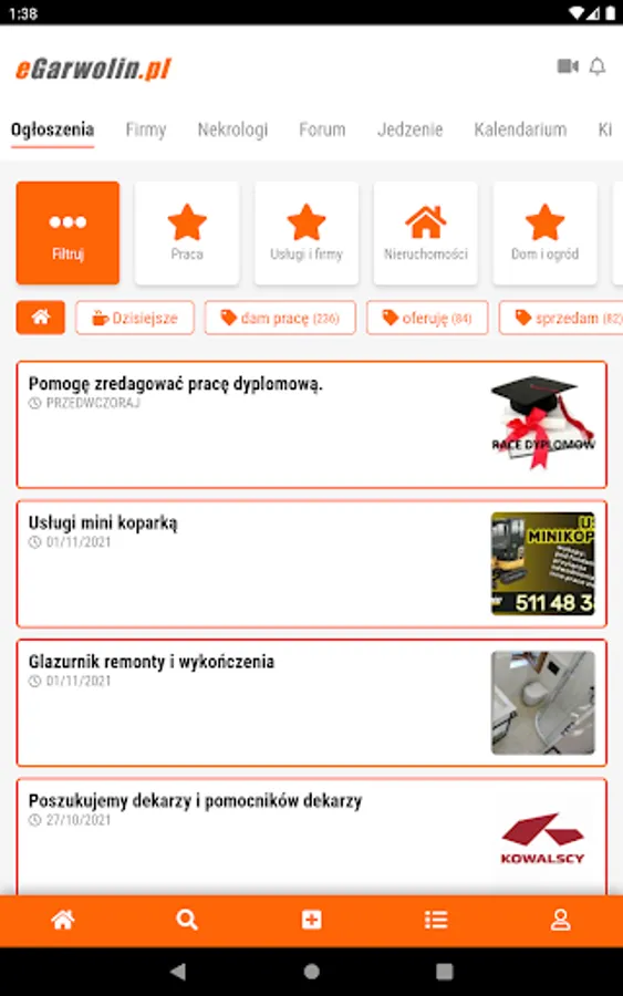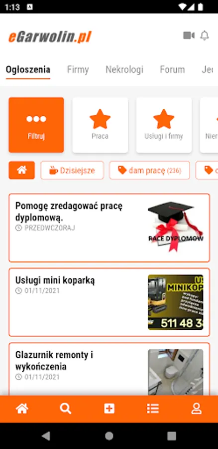 News, information and announcements in a convenient form. Thanks to the eGarwolin.pl application, you know about the most important events in Garwolin and the Garwolin poviat. Stay up to date with what's important in your area. In the eGarwolin.pl application, you can easily add an advertisement and find a local company whose services you want to use