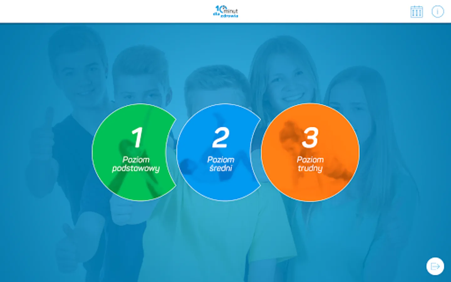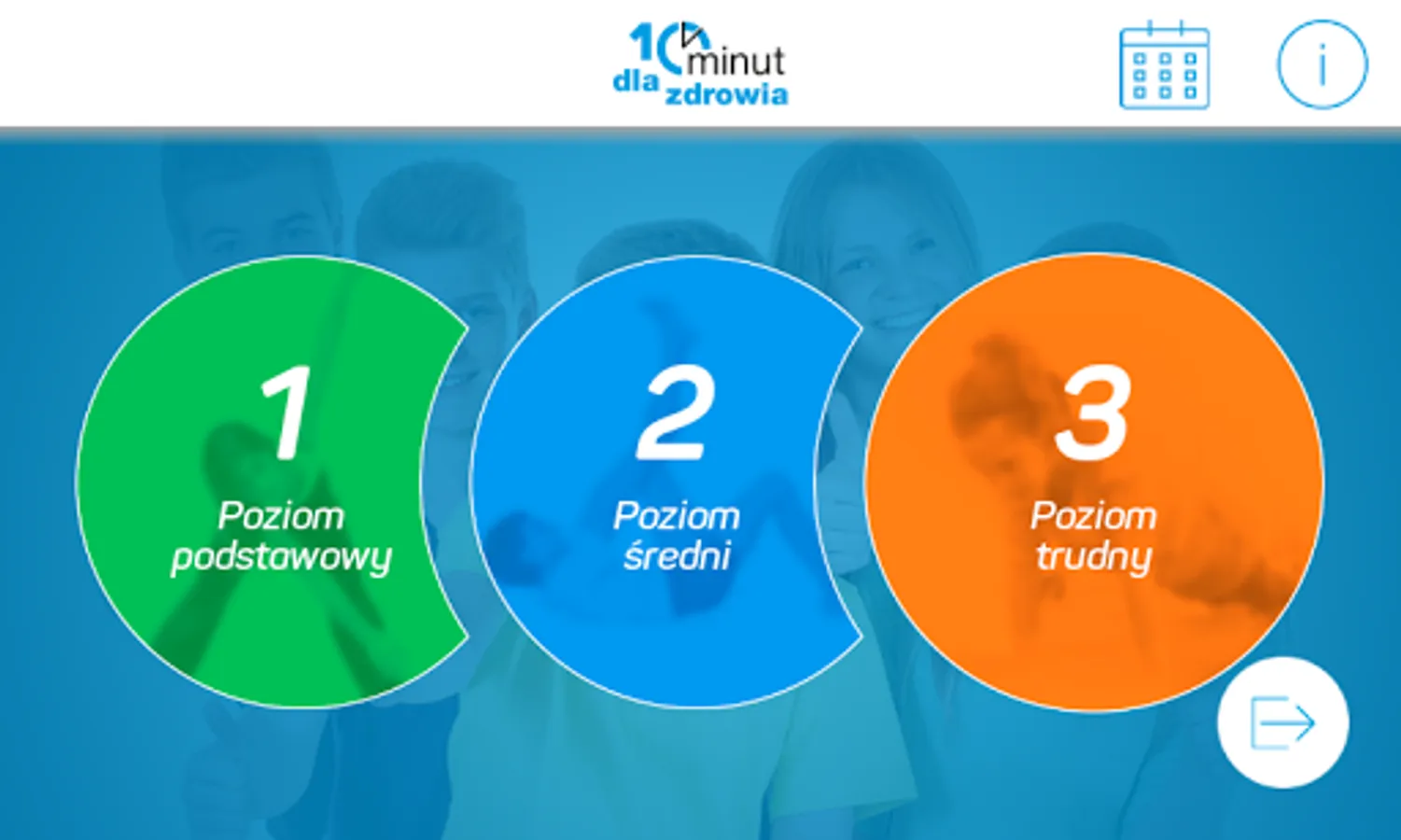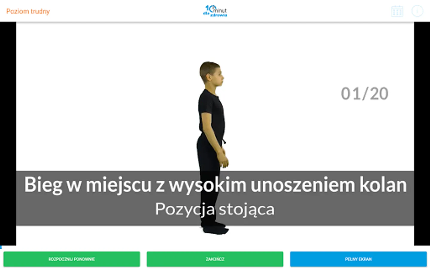 Sets of exercises have been prepared so that the implementation of the "health training" was possible in the home, in a small space and without the use of utensils. This solution allows daily physical activity (eg. Before the evening bath or during a break in the homework)