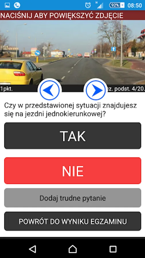 a) choosing from two proposed answers, denoted by "YES" or "NO" one answer - it concerns questions of fundamental knowledge; to read the content of the exams questions the person has 20 seconds and then to answer is 15 seconds;
