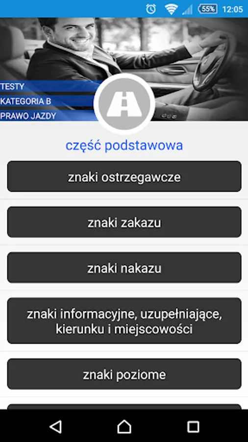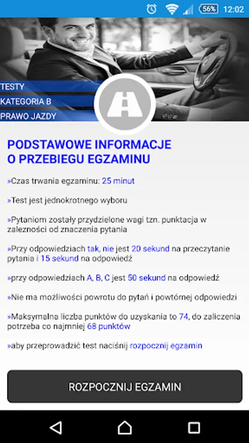The program tests for driving license. B consists of two parts (exam and base lessons).