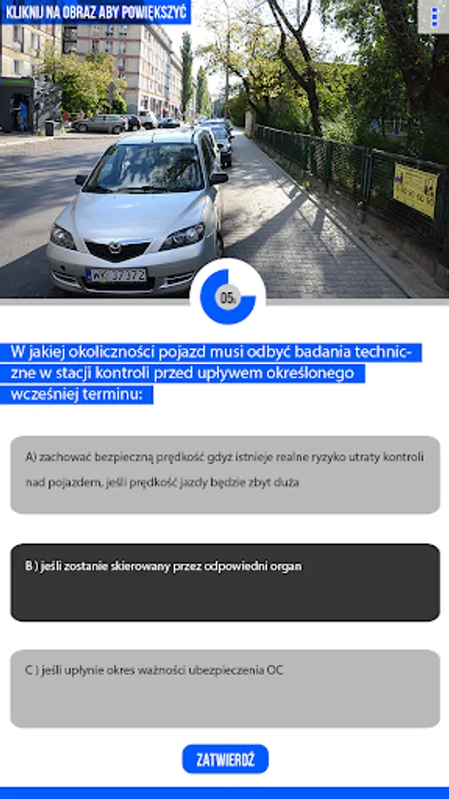b) the choice of three proposed answers indicated by the letters A, B and C one answer - it concerns questions of expertise; to read the questions and answer exams person has 50 seconds.