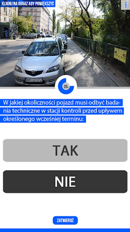 a) the choice of two proposed answers, denoted by "YES" or "NO" one answer - it concerns questions of fundamental knowledge; to read the content of the questions a person exams have 20 seconds, then for replying is 15 seconds;
