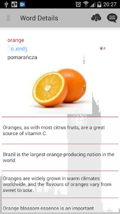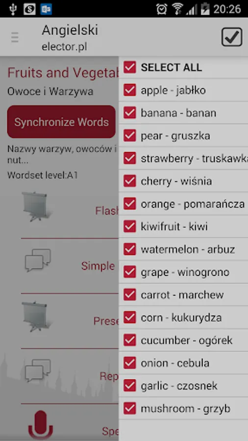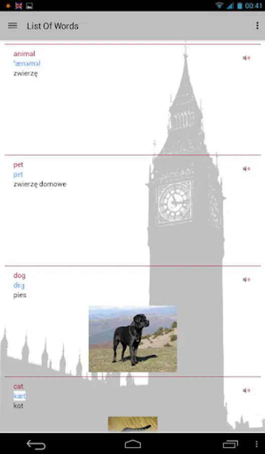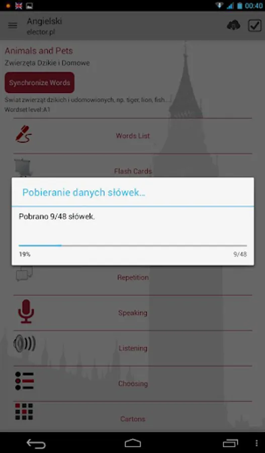 Is that it's simplicity, lightness, the effect of offline (no internet access). Audio recordings are also available offline. All you have to synchronize the selected sets of words, and they are available in their entirety online (images, pronunciation). The application has a database of almost 17 thousand words, divided into nearly 250 different sets of topics. Sets of words you can browse the categories and levels (A1, A2, B1, B2, C1, C2). The application is TOTALLY FREE with no hidden charges! It works WITHOUT ACCESS TO THE INTERNET! It does not require registration, logging and other paperwork! However, the user has the possibility to set up a user account option to synchronize our words personalizing web server.