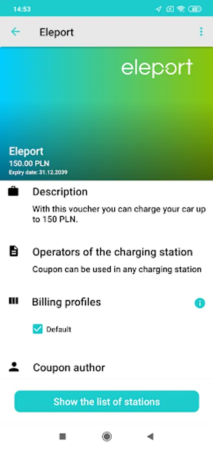 Thanks to Eleport app you will charge your electric vehicle. Install the app, open an account, find a charging point and charge your electric vehicle. Pay by credit card or reduce fees through coupons. Control your business expenses thanks to billing profiles.