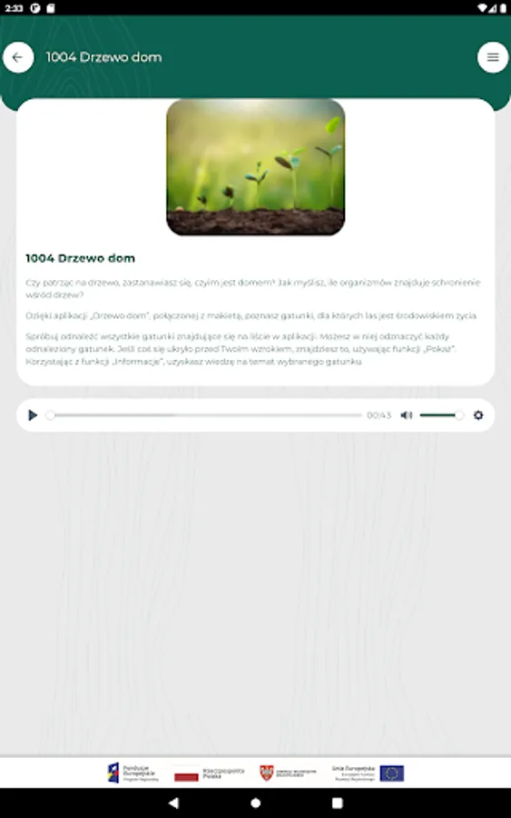 The guide application is a source of knowledge about the Exhibition in the Forest Educational Chamber of the Oborniki Forest District and the entire Forest District.