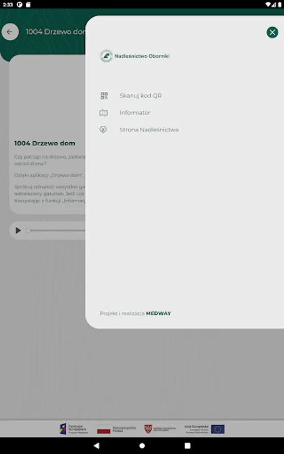 The application allows you to scan QR codes that evoke content related to a given exhibit of the exhibition or a place in the Oborniki Forest District.