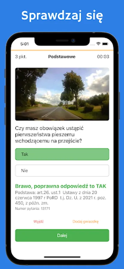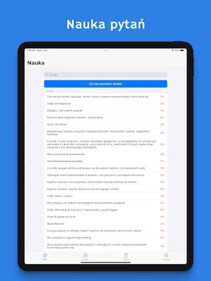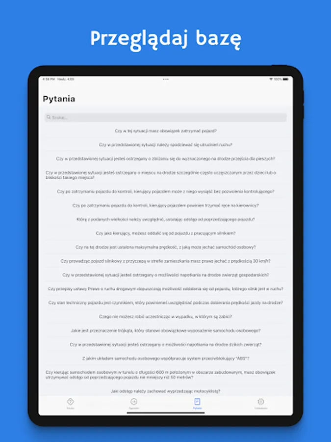The application is used to learn questions for the theoretical driving license exam in Poland.