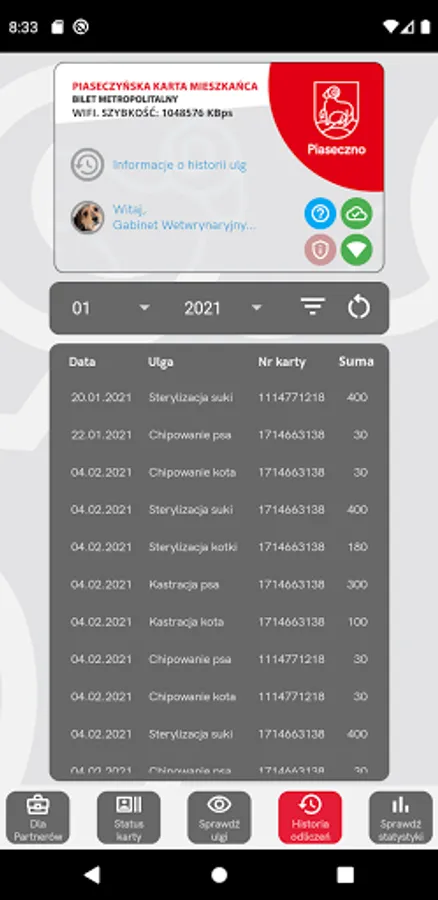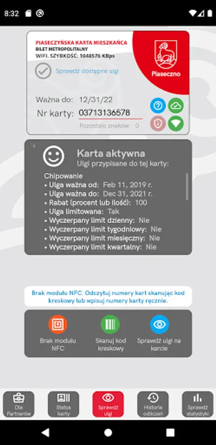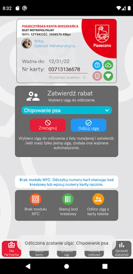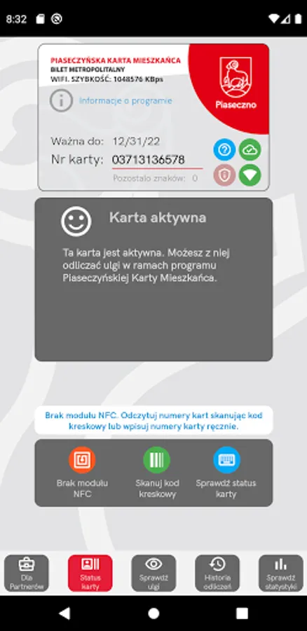 The Piaseczno Commune, as part of the program, offers Program Partners a free application for conveniently checking the status of the card and used discounts by its holders as well as keeping and counting discounts.