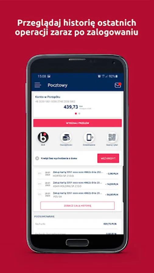The intuitive and easy-to-use mobile application of Bank Pocztowy was created for customers who want to have a quick, safe and convenient access to their finances. You use it when and how you want - on your smartphone and tablet.