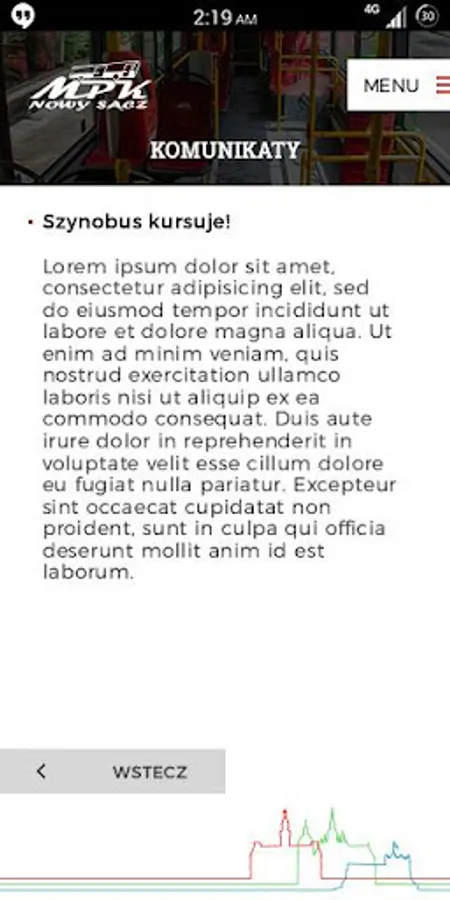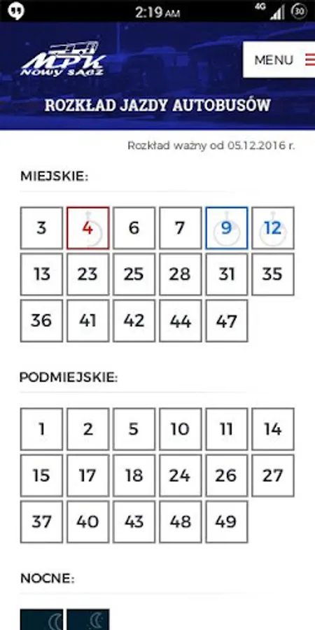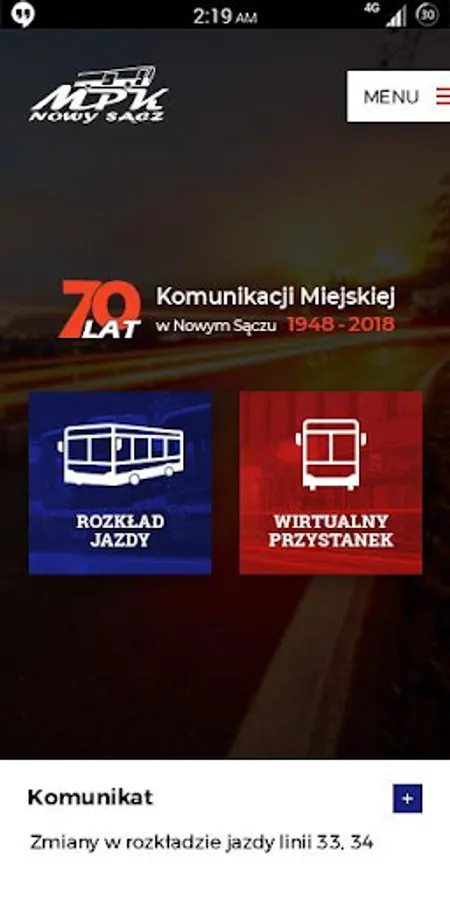 Assistant is an application and widget that will allow you to view timetables, current time and the most important messages prepared by MPK in Nowy Sacz. It gives the possibility to obtain information about current bus departures with stops in real time, based on GPS information about the position of a scheduled bus or driving time. The application in off-line mode allows you to view the timetable. This simple solution will allow you to see when your bus will leave without having to stop on the tour. With this application you can easily plan your trip.