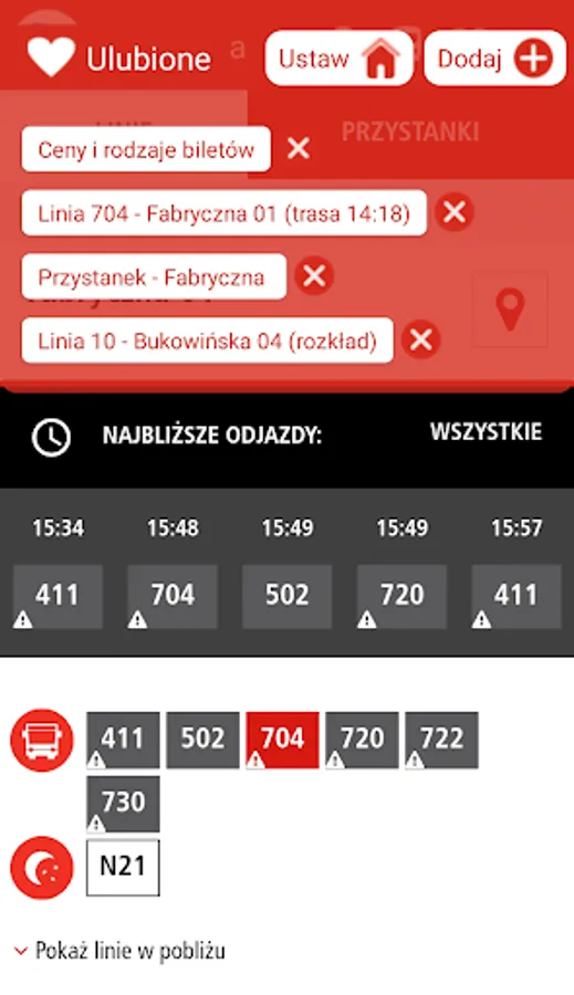 The application presents data of ZTM WTP Warszawa and RealBus Warszawa services with implemented additional functions using the public API (GPS location, searching for nearby stops, remembering favorite stops, current speed). It allows you to search for connections, view timetables and other content related to public transport in the capital. Thanks to the RealBus service, it is possible to check the current position of buses and trams.