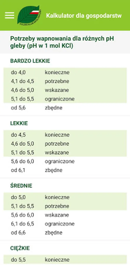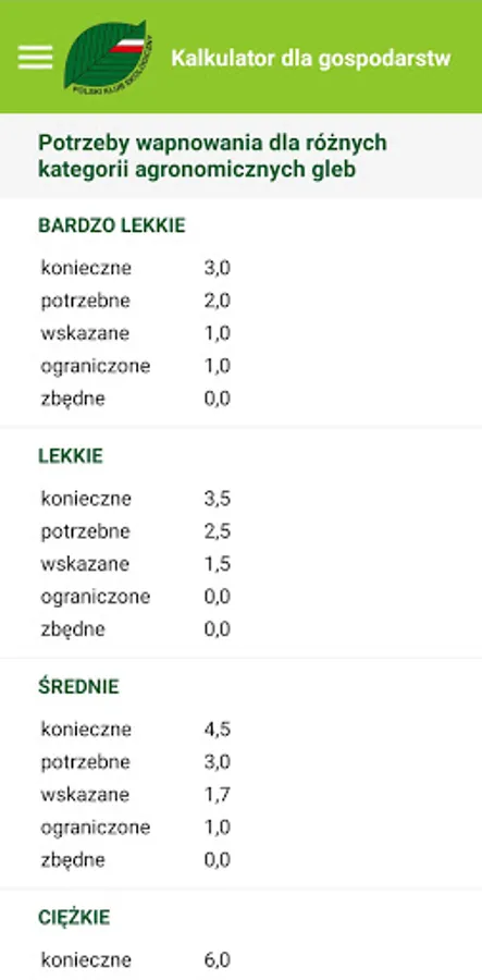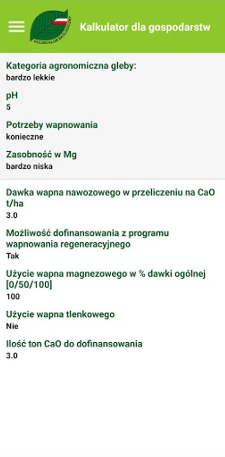 The application is based on information such as: soil type, type of agrotechnical treatments, amount of fertilizers delivered per 1 ha of crops, type of crops used.