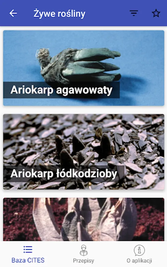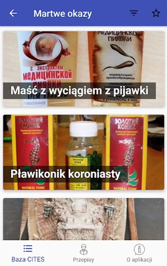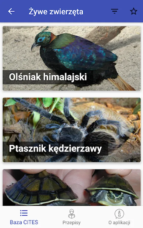 The application presents the most commonly occurring listed species in the course of trade