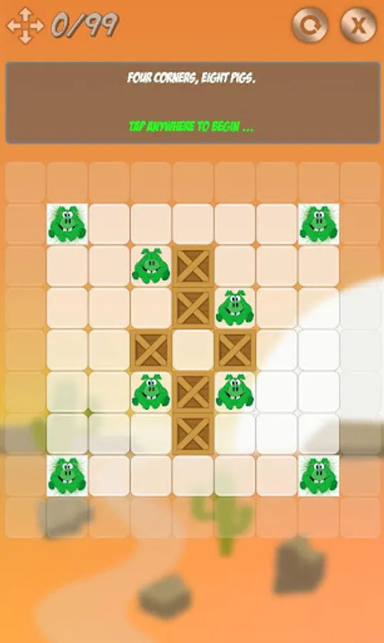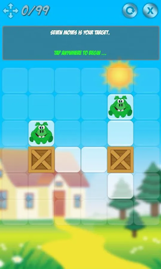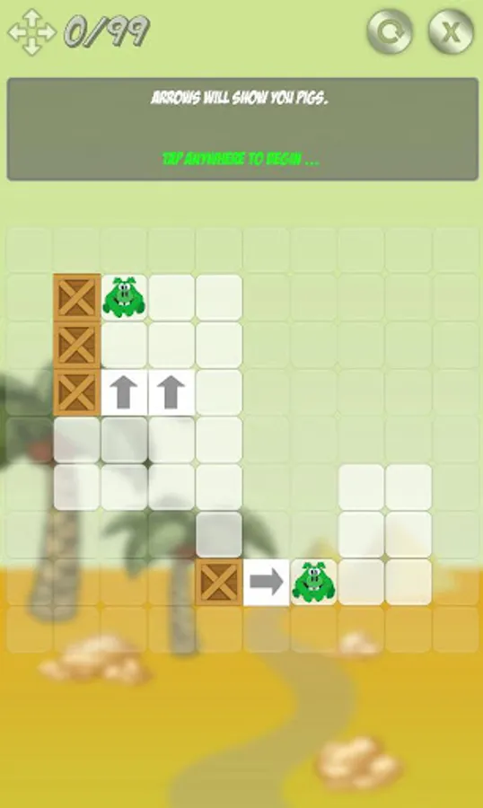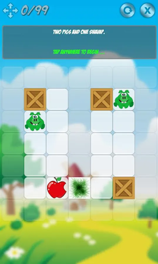 Swipe screen to move objects and pigs. Connect 2 pigs or more to explode them. Eat apples... use one way road and swamps and just kill them all!