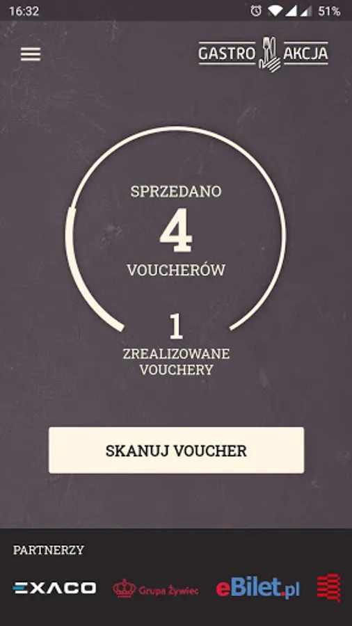 The application is aimed at owners of premises who participate in the campaign. The owner can check the status of all vouchers purchased in the eBilet system in the application, with the divisions for used and to be used. He will also be able to use the application to scan the QR code available on the consumer's voucher. The code is one-time, and once scanned, it burns up and cannot be reused.