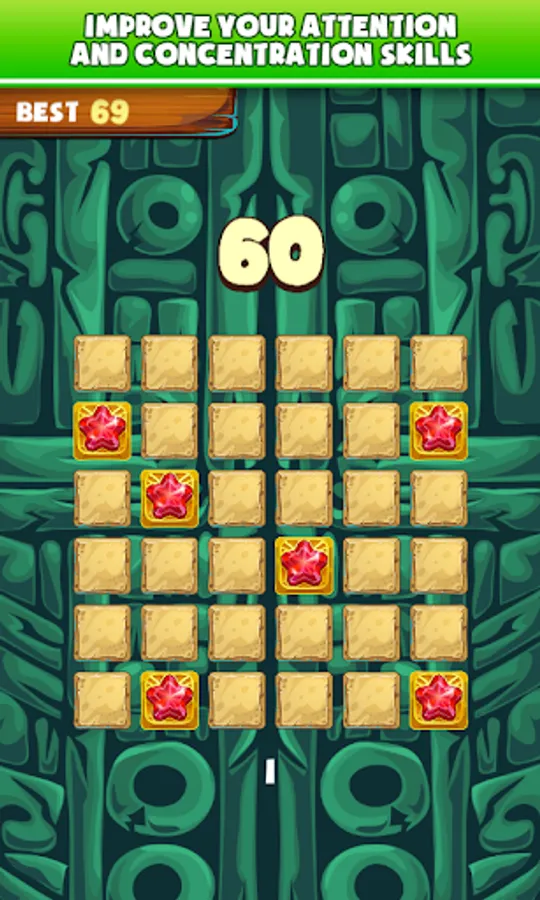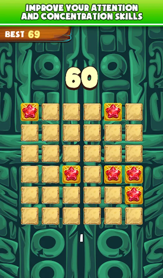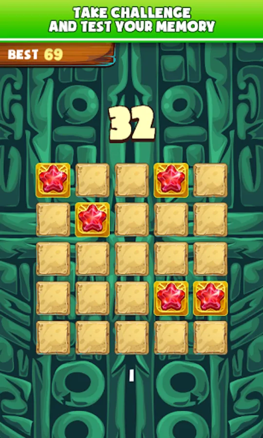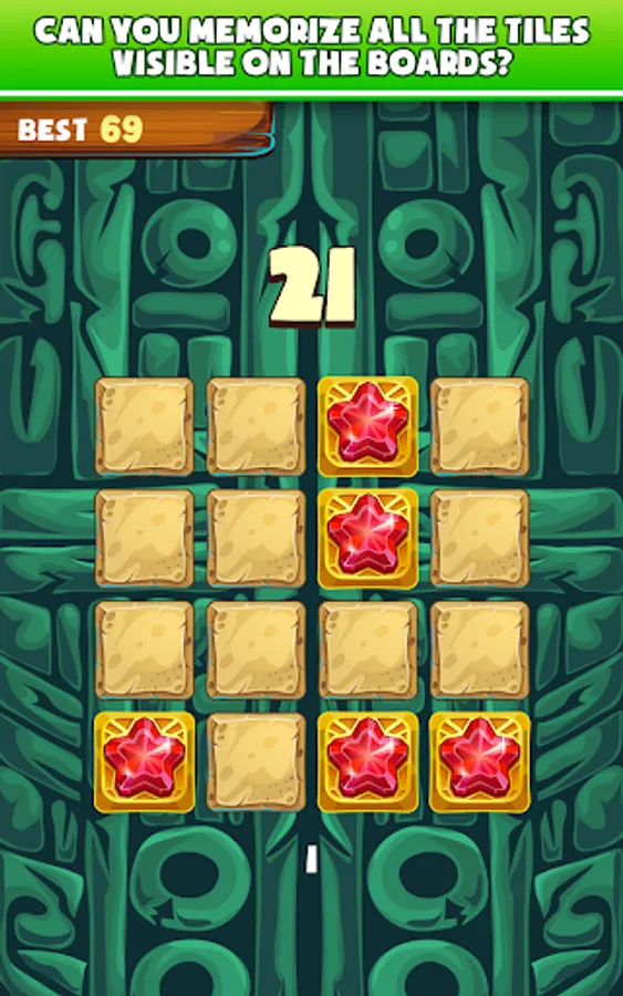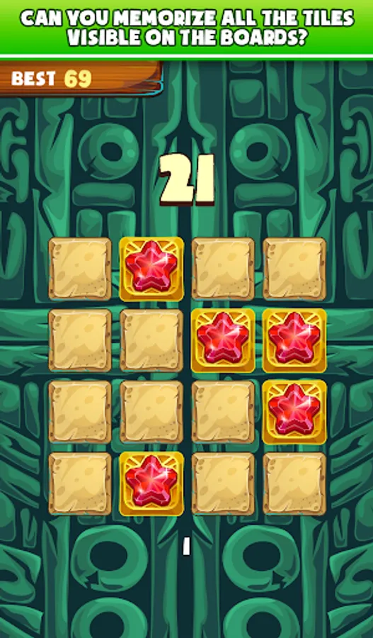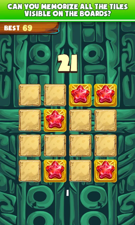 Can you memorize and recreate pattern of tiles on 3x3 board? Can you do it on 4x4, 5x5 and 6x6 board? You have only one second to memorize a pattern. Looks simple? But is quite difficult. So, take a challenge and test your memory in this addicting brain teaser!